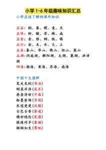 名称:《小学语文重点知识汇总 (1-6年级上册)》